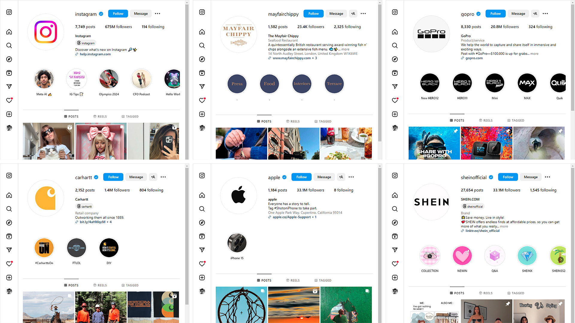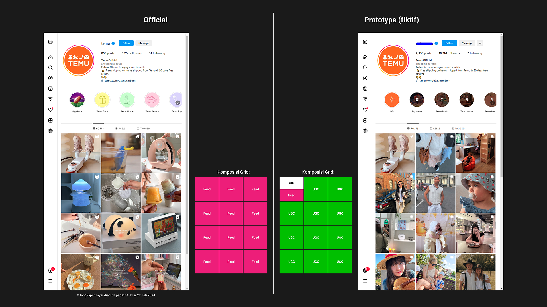 Beberapa contoh prototype (Instagram) yang mewakili kategori: